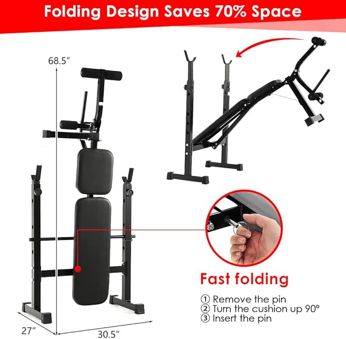 - --Be Stronger & Healthier: Get fit right at home with this multi-purpose Olympic weight bench set for full-body workouts including chest shoulder back abdomen hip arm leg muscles.