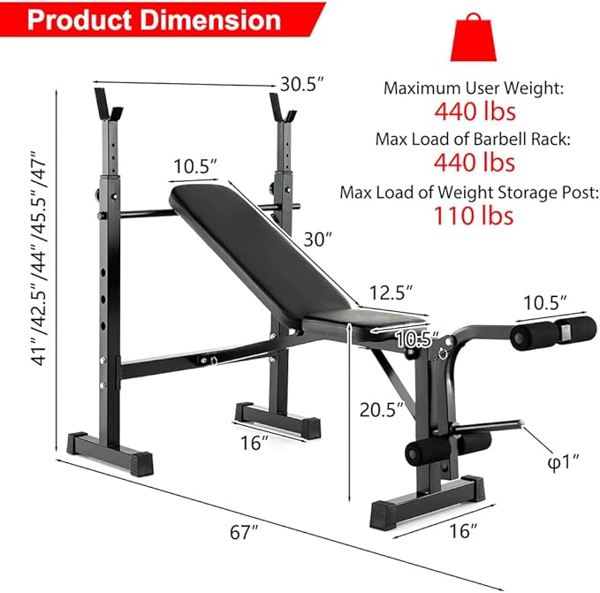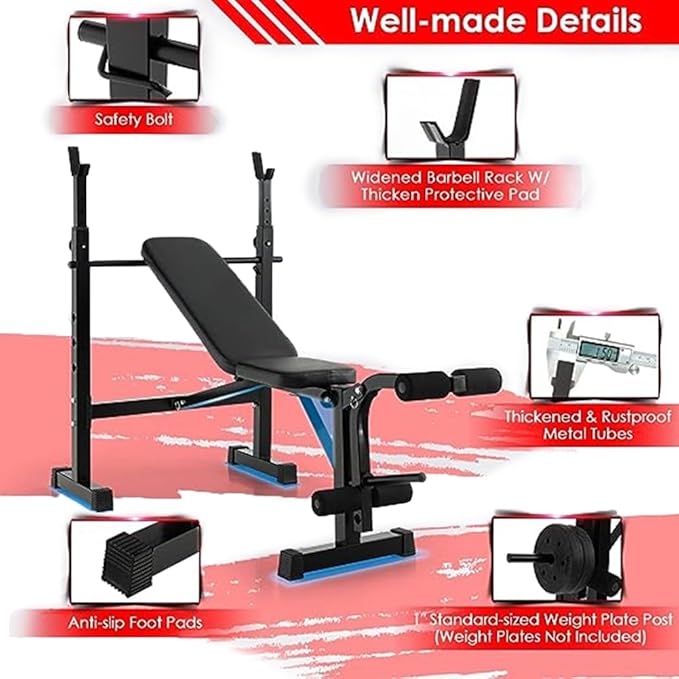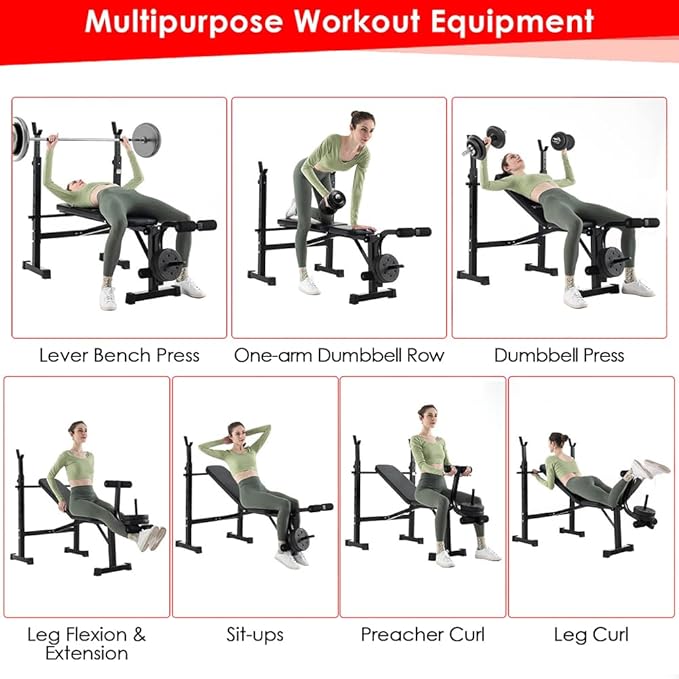 - --Be Stronger & Healthier: Get fit right at home with this multi-purpose Olympic weight bench set for full-body workouts including chest shoulder back abdomen hip arm leg muscles.