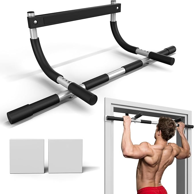 - PROTECTIVE DESIGN - Safeguard your doorframe with the pull-up bar's foam padding and two silicone pads. These features not only withstand daily use but also provide an extra layer of defense for your door frame.