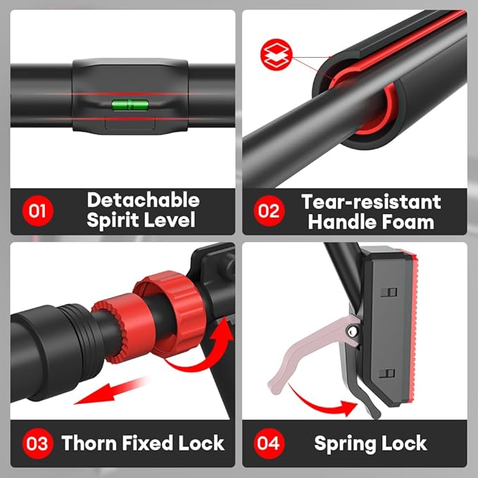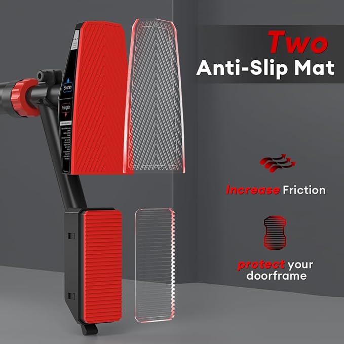 - EFFORTLESS INSTALLATION - Setting up your home gym is a breeze. No drilling or screws are required. Come with a level, that helps you install the hanging bar more balanced. Two different anti-slip mats provide great support for daily exercise.