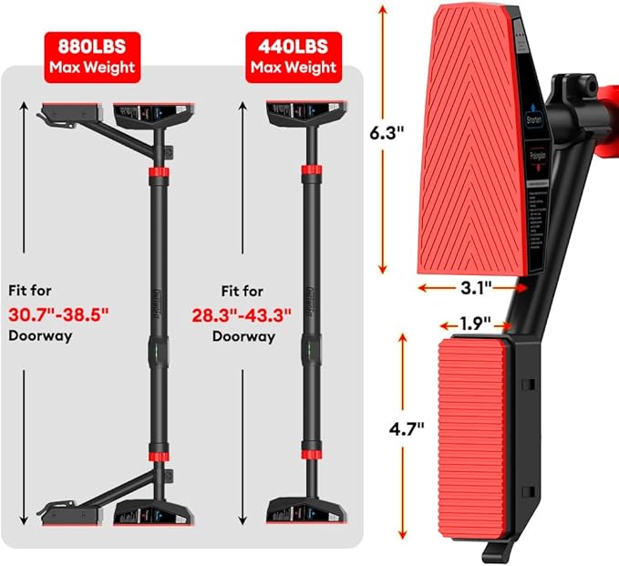 - FULLY ADJUSTMENT EXERCISE BAR - Door frame pull up bar without support fit for 28.3"-43.3" doorway, with support fit for 30.7"-38.5" doorway. Please install it on the solid and smooth doorframe, don’t install it on a hollow MDF door. Measure your door frame before ordering.