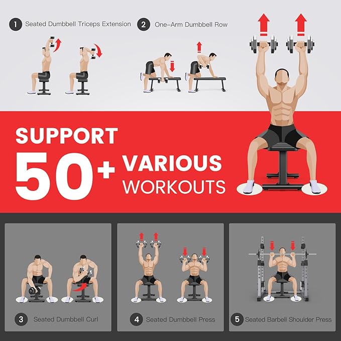 - 【Adjustable & Non-slip Foot Caps】The Bench Press features non-slip end caps that are designed to fit all widths around the circumference, allowing for adjustments on uneven flooring. The end caps are also rotatable to ensure maximum stability.