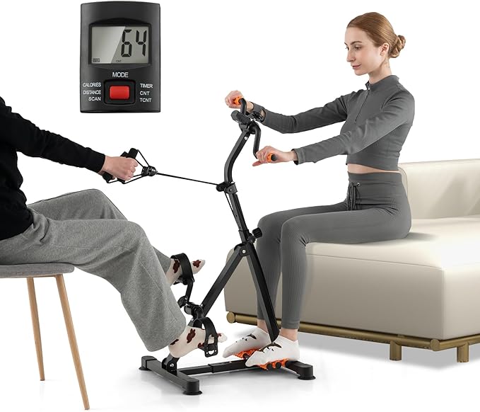 • 【Flexible Adjustments】 Our cycle fitness equipment can be customized in height and length to provide a cozier using experience. The indoor bicycle exerciser is designed with 4 adjustable heights (34.5"-39.5") and 6 adjustable length (17"-21"), allowing you to exercise your arms & legs on different sofas or chairs. Plus, you can choose a suitable tension level of the handlebar and foot pedals by rotating the knobs.