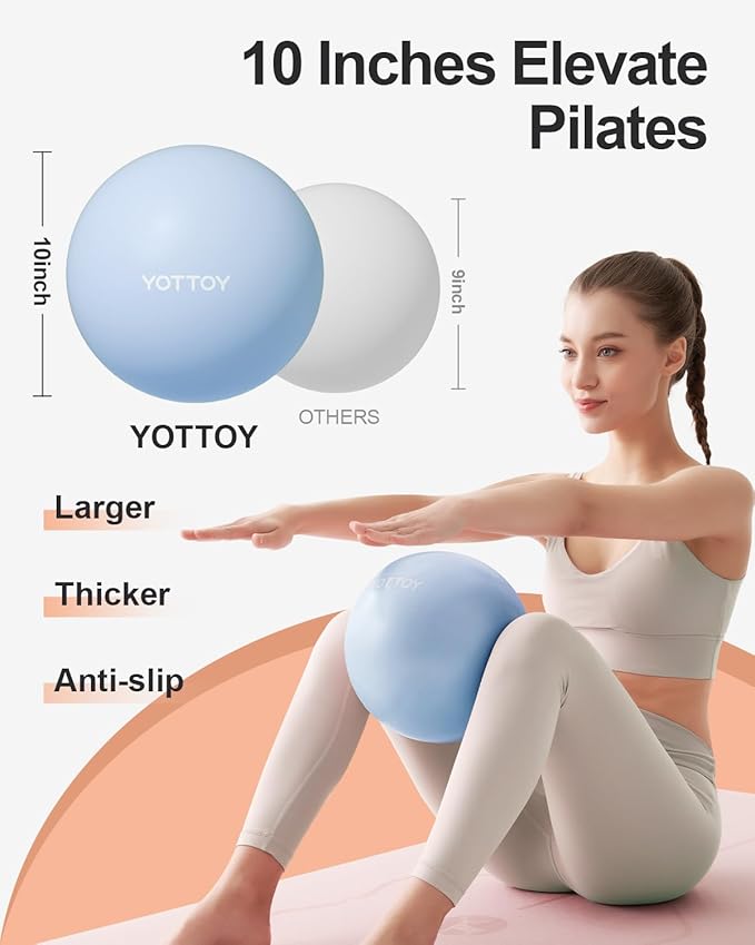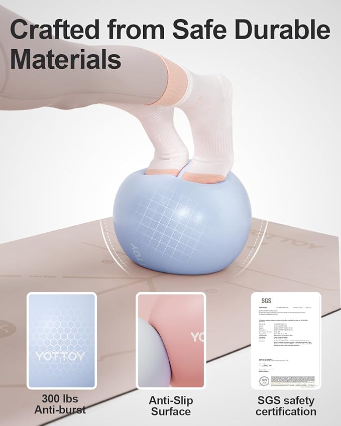 - Anti-slip Surface: The surface of the YOTTOY stability ball is textured and anti-slip, preventing it from sliding or rolling during use. This feature enhances safety and stability, especially when performing exercises on hardwood or tile floors.