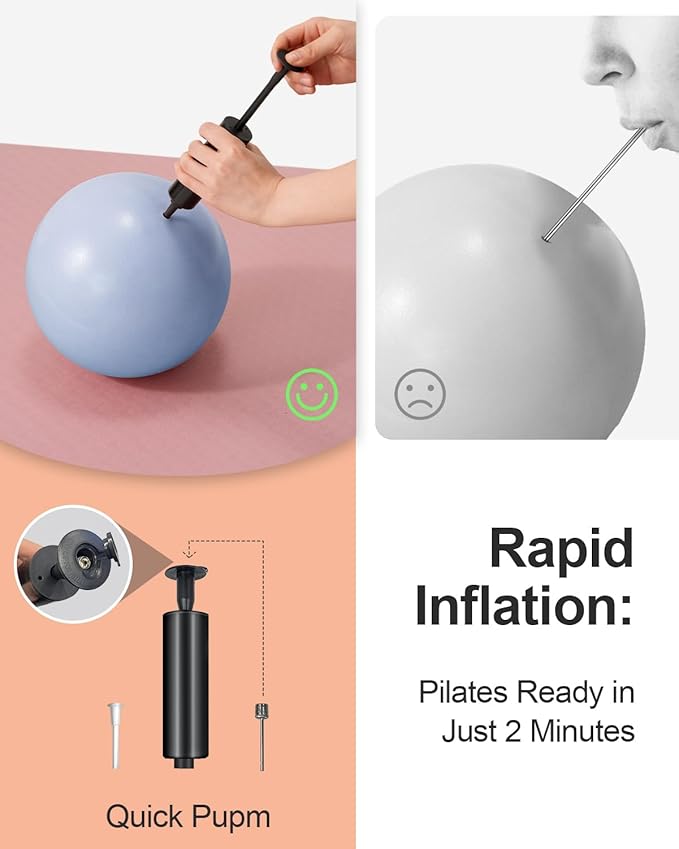- Easy to Inflate and Deflate: The YOTTOY stability ball comes with a high-quality foot pump that makes it easy to inflate and deflate. Simply insert the pump into the ball's valve and inflate it to the desired firmness.