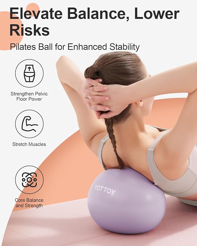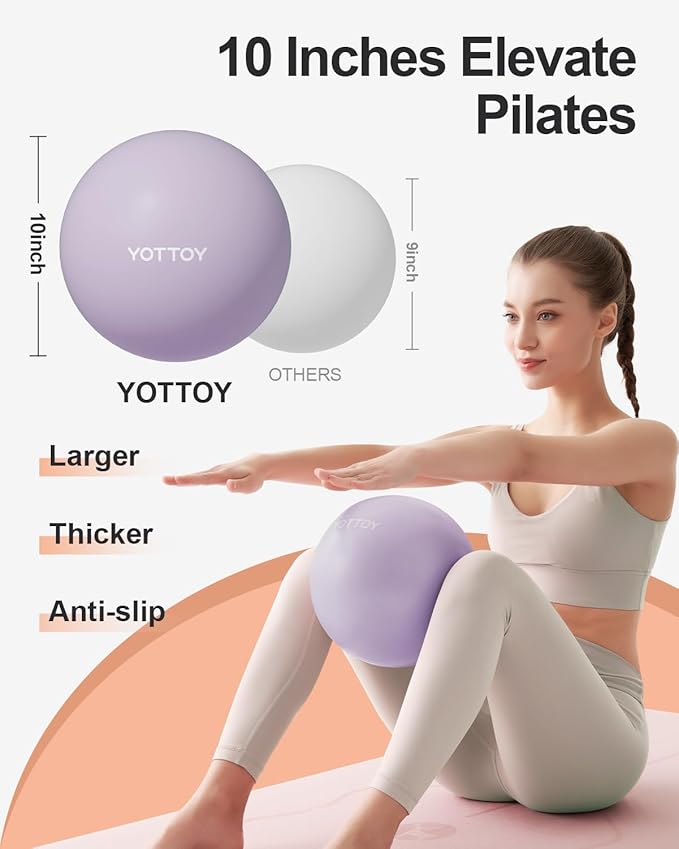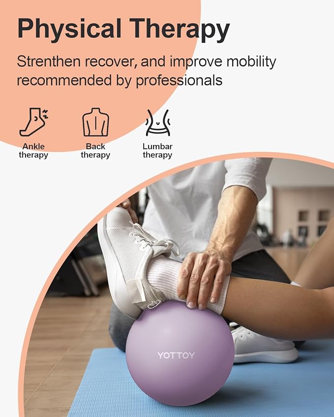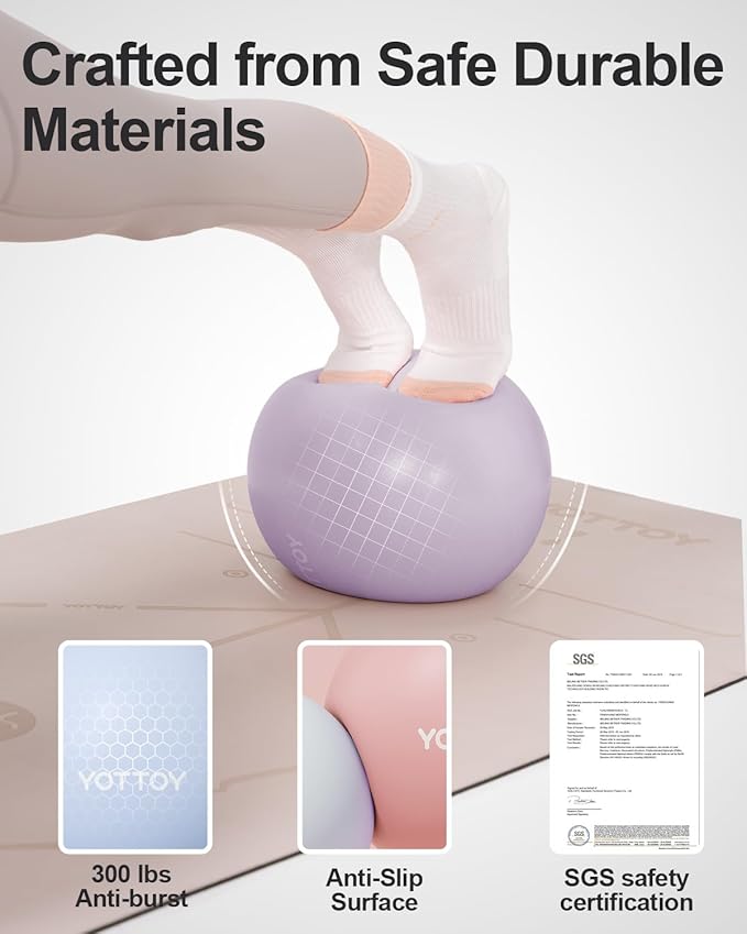 - Anti-slip Surface: The surface of the YOTTOY stability ball is textured and anti-slip, preventing it from sliding or rolling during use. This feature enhances safety and stability, especially when performing exercises on hardwood or tile floors