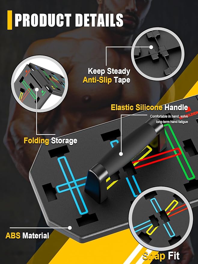 - MULTIFUNCTIONAL PUSH UP DEVICE:Our Foldable Pushup Board is uniquely color-coded to guide you through various effective pushup positions. Designed to target specific muscle groups—chest, shoulders, triceps, biceps, and back—while also engaging your core. Scientifically proven to boost muscle activation by 30% to 50%. Includes detailed instructions and professional training advice to help you get the most out of your full-body workout.