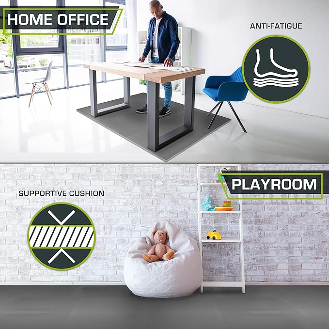 - PROTECTIVE, PORTABLE FLOORING – Dense, durable tiles protect floors and withstand gym equipment and heavy use