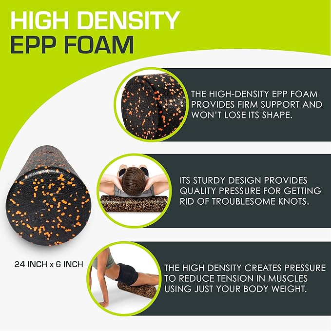 - FIRM MASSAGE – High-density foam structure provides a deeper massage than standard foam rollers, and is extra firm to support all body types without losing shape after regular use. Effective for all fitness levels from beginners to advanced. Maximum weight capacity is 300 lb