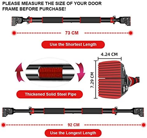 - ✿【Adjustable Pull Up Bar】HANDSONIC’s pull-up bar allows you to customize the length and easily fits most door frame. Installation of the pull-up bar requires no screws or drilling. The chin-up bar can be adjusted to the mounting height at any time. Please measure the size of your door frame before purchasing to ensure the pull-up bar will fit your door frames.