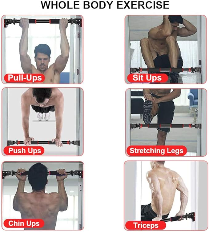- ✿【HOME GYM ESSENTIAL】 Our pull-up bar is perfect for pull-ups, chin-ups, sit-ups, dips, crunches, triceps dips, leg raises, and more. The pull-up bar is easy to carry and hassle-free to install. You do not need to go to the gym. You can save time and money by using our pull-up bar to workout at home!