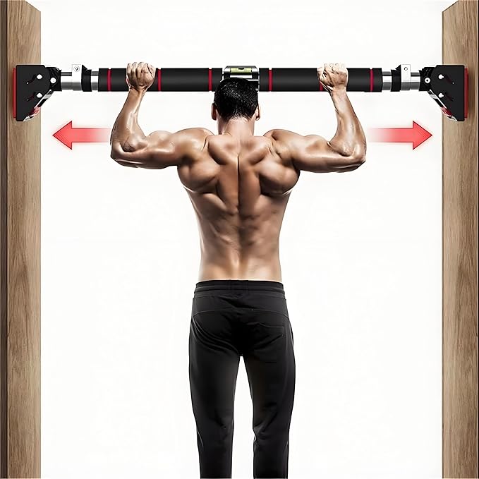 • 💪【NO Marks Left On Doors】Using a soft anti-skid pad on each side of the pull-up bar, the anti-skid material of the chin-up bar prevents the bar from suddenly falling off. Our pull-up bar features a locking mechanism made of stainless steel that prevents the pull-up bar from rotating during use. The locking mechanism ensures safety.