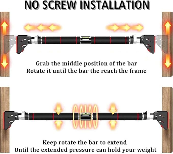 - 💪【NO Marks Left On Doors】Using a soft anti-skid pad on each side of the pull-up bar, the anti-skid material of the chin-up bar prevents the bar from suddenly falling off. Our pull-up bar features a locking mechanism made of stainless steel that prevents the pull-up bar from rotating during use. The locking mechanism ensures safety.