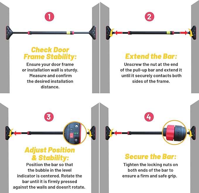 - ✅ MULTI - FUNCTIONAL EQUIPMENT: Our pull up bar is more than just a chin up bar. Use it as a door bar for pull ups or a hang bar for stretching, the possibilities with this versatile fitness equipment are endless.