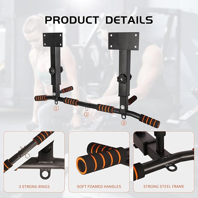 - Multifunctional: Use this wall mount pull up bar for extensive practice, including pull-up to the ground, chin up, and leg lift, effectively targeting the back, shoulders, chest, and arms.