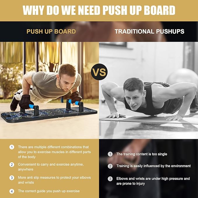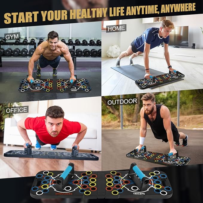 - FOLDABLE AND ADJUSTABLE PUSH UP BOARD: The push up board can be folded, and you can put the push up handle into it, even making it very convenient to hold. Whether you are at home, in the office, or in the gym, you can enjoy exercising anytime and anywhere with it.