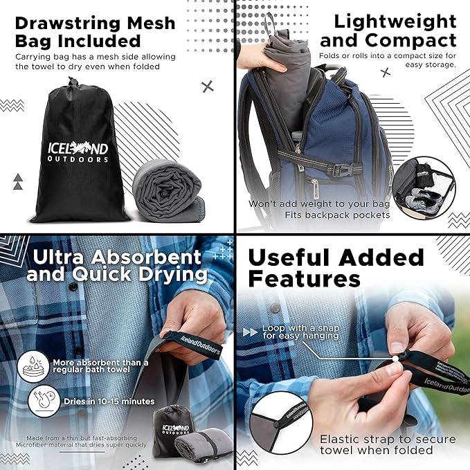 - SAY GOODBYE TO BULKY BEACH TOWELS - The worst thing about beach trips is carrying all the baggage. Now you can enjoy memorable trips without the hassle of carrying heavy beach towels. Simply use the included Draw String Carrying Bag with mesh ventilation to store, carry, and transport your Iceland Outdoors Microfiber Towels! Plus, these smart beach towels also repel sand… Perfect to bring on your next adventure