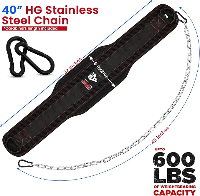 - UPTO 600LBS HIGHER WEIGHT CAPACITY Robust gym belt for weighted pull-ups is one of those few pieces of equipment that are not easy to find, and RDX is here to help its customers out of this tight corner. With the robust 36-inch-long 7-gauge HG stainless steel chain, this chained weight belt can bear a maximum of 600lb weight.