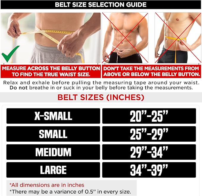 - VARIABLE SIZES– Kindly do not choose your exercise belt size as your pant size. Refer to the size chart in the picture to choose the size correctly. If your waist measurement falls between two sizes choose the upper size for maximum utility.