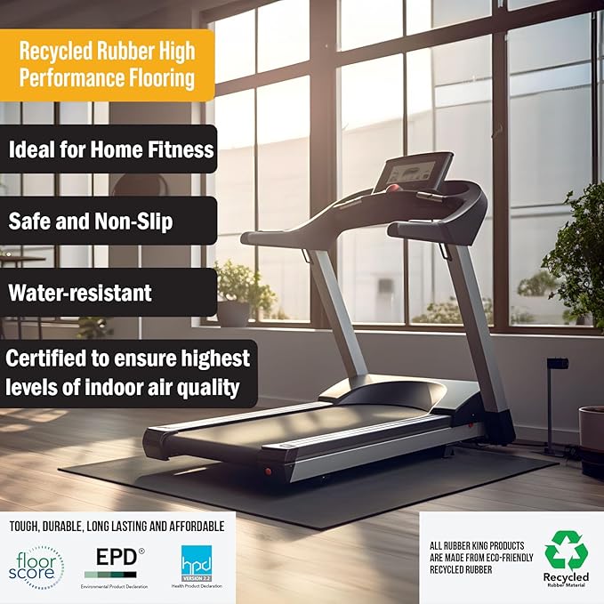 - ADAPTABLE FOR DIVERSE EXERCISES: Approved for a variety of hard surface exercise applications, our mat is perfect for home gym flooring, stretching, free weights, powerlifting, yoga, CrossFit, kettlebells, jump rope, and placement under cardio equipment like treadmills, spin bikes, rowing machines, and ellipticals. Note: Not recommended for installation over carpet.