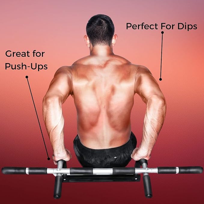 - HEAVY-DUTY: Constructed with heavy-duty steel, the metal chin-up bar ensures sturdiness and reliability, while the bar handgrip has professional-grade comfort foam for comfortable ergonomic gripping. The indoor gym bar is finished with shiny platinum to give your interiors an exotic match