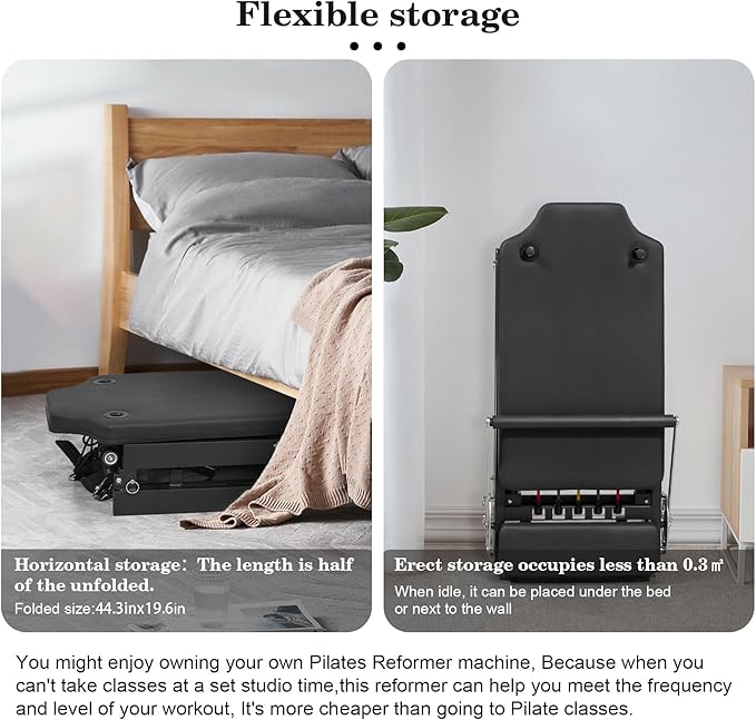 - 【Savings】When you can't to the Pilates studio but still want to maintain your workout routine, this reformer is suitable. Its reasonable price can help you save on membership fees and quickly recoup costs. Exercising at home means no need to adhere to a fixed schedule.