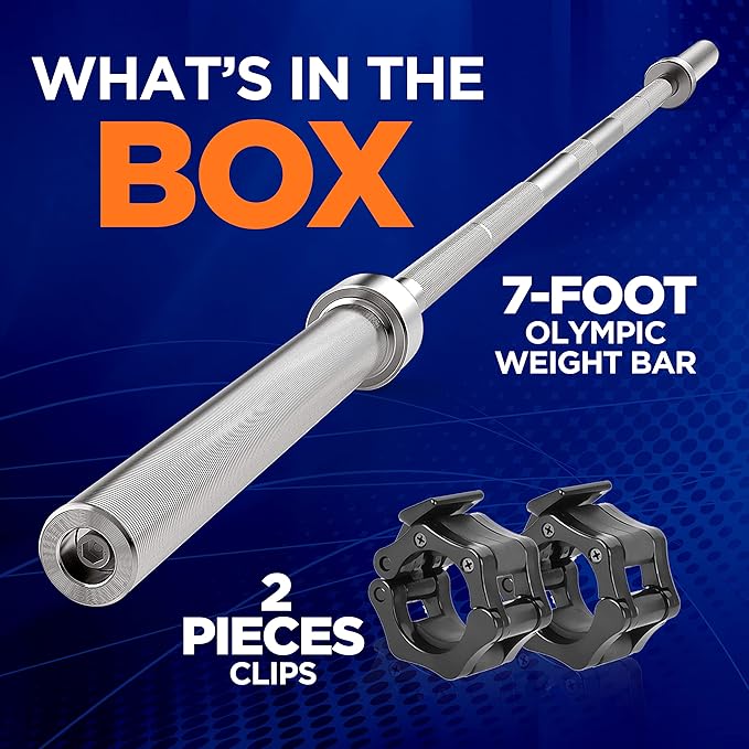 - 7FT LENGTH: This 7-Foot weight lifting bar provides sufficient length & weight and is compact and convenient enough for all gyms and homes. Perfect for home fitness exercise equipment for a total body workout in the convenience of your own home
