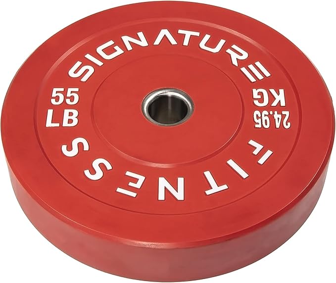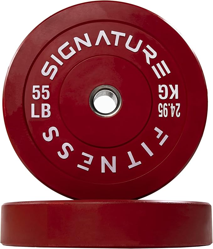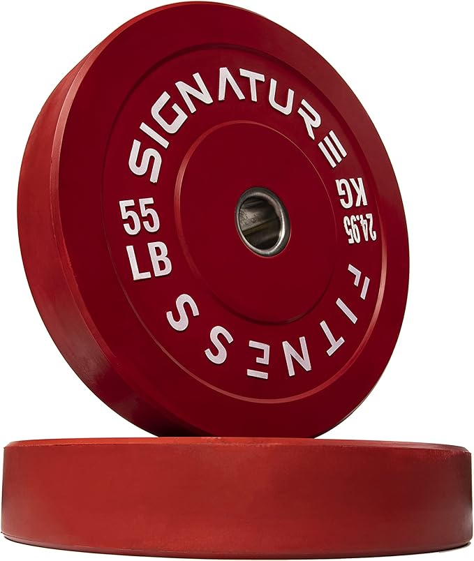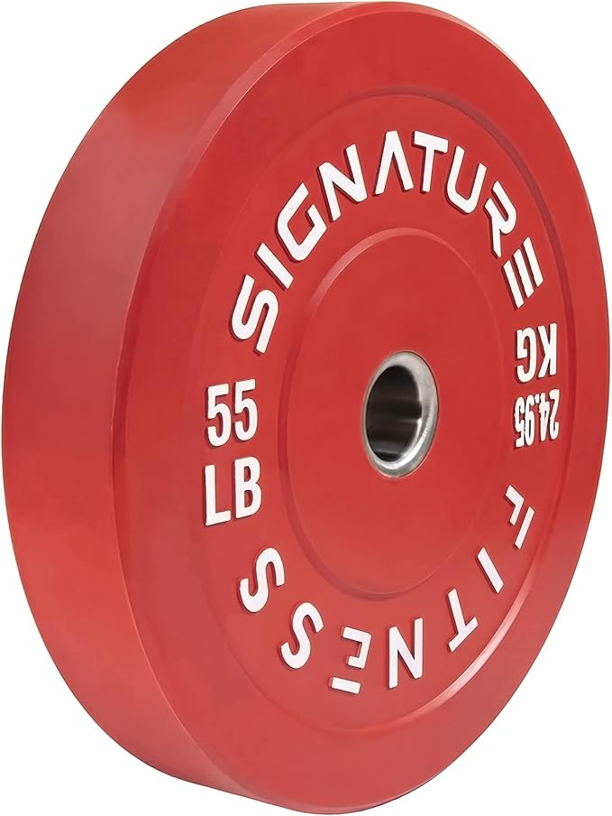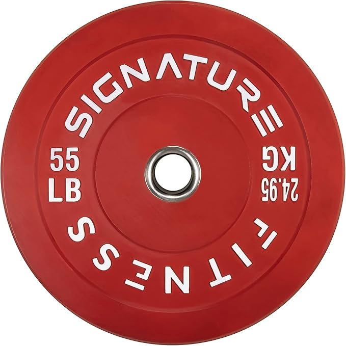 - 🌟 100% VIRGIN RUBBER - LOW ODOR AND BOUNCE 🌟 - Signature Fitness Bumper Plates contain NO recycled rubber. This means low to no odor, guaranteed durability, and low "dead" bounce for safety.