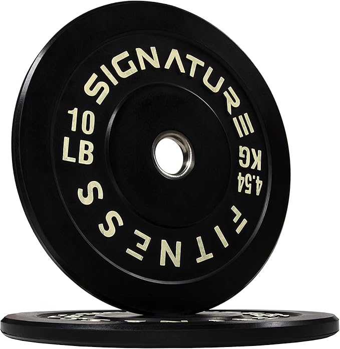 - 🌟 100% VIRGIN RUBBER - LOW ODOR AND BOUNCE 🌟 - Signature Fitness Bumper Plates contain NO recycled rubber. This means low to no odor, guaranteed durability, and low "dead" bounce for safety.