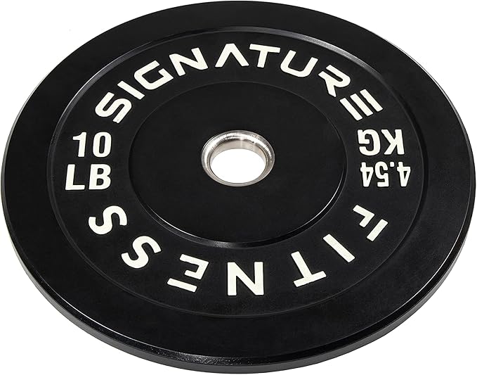 - 🌟 100% VIRGIN RUBBER - LOW ODOR AND BOUNCE 🌟 - Signature Fitness Bumper Plates contain NO recycled rubber. This means low to no odor, guaranteed durability, and low "dead" bounce for safety.
