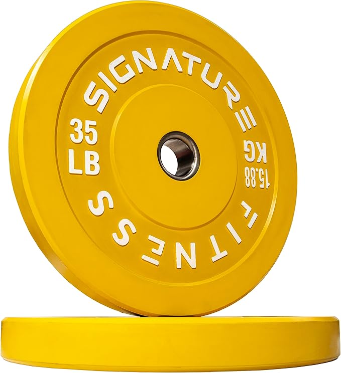 - 🌟 100% VIRGIN RUBBER - LOW ODOR AND BOUNCE 🌟 - Signature Fitness Bumper Plates contain NO recycled rubber. This means low to no odor, guaranteed durability, and low "dead" bounce for safety.