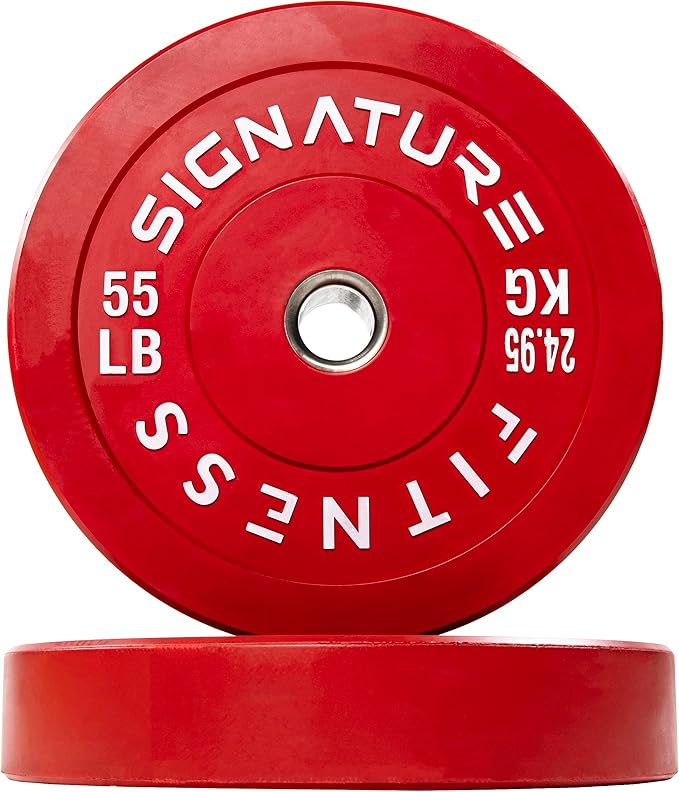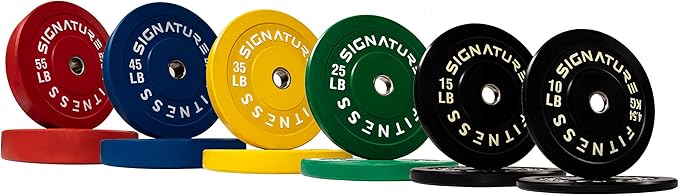 • 🌟 100% VIRGIN RUBBER - LOW ODOR AND BOUNCE 🌟 - Signature Fitness Bumper Plates contain NO recycled rubber. This means low to no odor, guaranteed durability, and low "dead" bounce for safety.