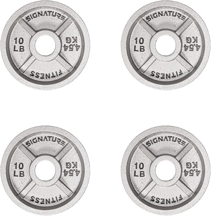 - ✅OLYMPIC STYLE PLATES – Constructed of Solid Cast Iron with a 2-inch machine drilled hole and durable Silver Enamel finish. Simple, classic, and tough enough to endure a rock-solid workout! Note: Each weight plate has a 2-inch center hole diameter that is designed to fit on standard Olympic Barbells.