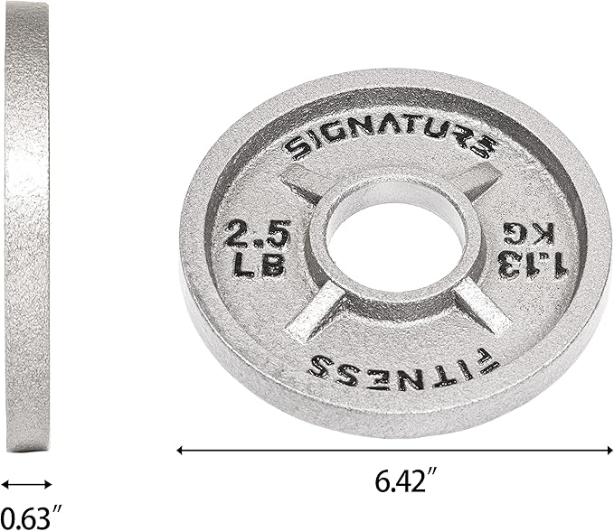 • ✅OLYMPIC STYLE PLATES – Constructed of Solid Cast Iron with a 2-inch machine drilled hole and durable Silver Enamel finish. Simple, classic, and tough enough to endure a rock-solid workout! Note: Each weight plate has a 2-inch center hole diameter that is designed to fit on standard Olympic Barbells.