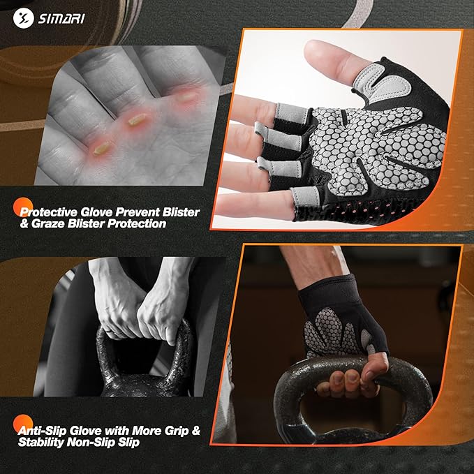 - SIMARI Workout Gloves Thicked Palm Pad & Shock Absorption Capability, Breathable & Comfortable, Protecting your hands Fully.