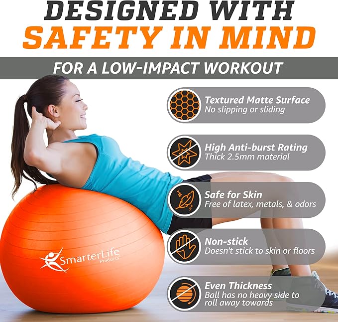 - MADE SAFE: Free of latex, toxins, heavy metals, and unpleasant odors, our workout ball is safe for those with sensitive skin. Whether you're doing yoga, Pilates, or CrossFit, our fitness ball empowers you to work out the way you want to.