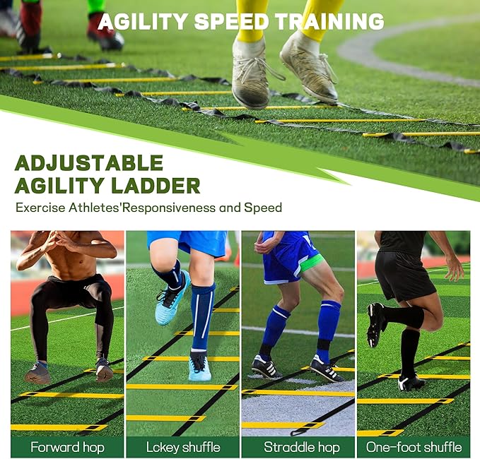 • Versatile Speed & Agility Training Set: Ideal for athletes of all ages, this training ladder set is perfect for soccer, football, rugby, basketball, and more. Enhance your footwork, speed, and coordination with this comprehensive soccer practice equipment kit.