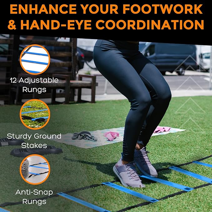 - Tangle-Free & Weather-Resistant: Our unbreakable anti-snap agility speed ladder and cones sports equipment set offers durability for the toughest athletes coaching & practice workouts.