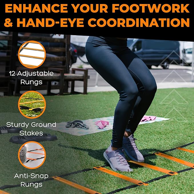 - Tangle-Free & Weather-Resistant: Our unbreakable anti-snap agility speed ladder and cones sports equipment set offers durability for the toughest athletes coaching & practice workouts.