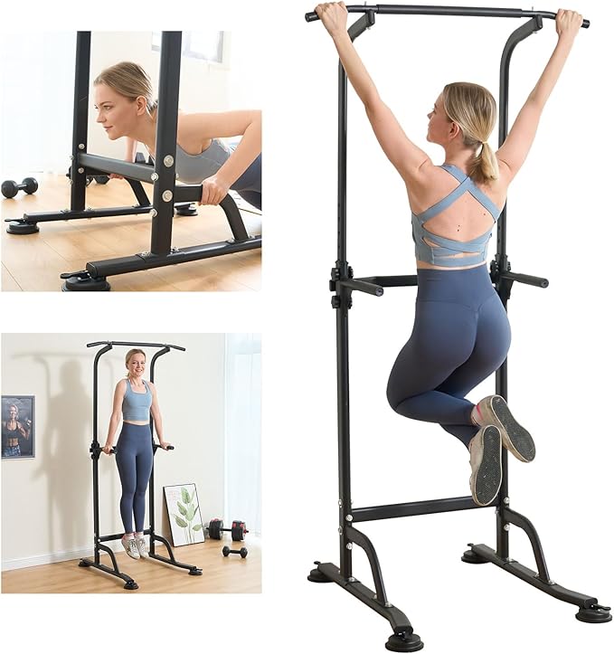 - [Multi-Function] Power tower can support a variety of exercises, such as pull-ups, push-ups, pull-ups, push-ups, knee lifts, etc. It can exercise your muscles, arms, back, chest, shoulders and leg muscles.