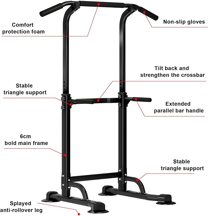 - [Multi-Function] Power tower can support a variety of exercises, such as pull-ups, push-ups, pull-ups, push-ups, knee lifts, etc. It can exercise your muscles, arms, back, chest, shoulders and leg muscles.