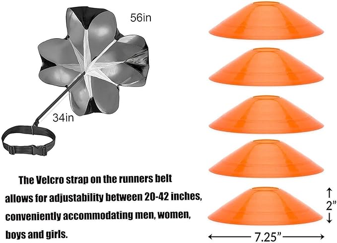 - Speed Chute Resistance Parachute: This power chute, can help you with strength training and speed training, as the speed increases so does the resistance offered by the parachute track, the quick release buckle allows for accelerated explosive training. Your explosive power and endurance will be effectively improved with this resistance training chute.