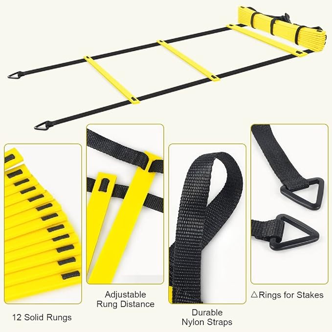- 【Agility Ladder(yellow)】It helps users to increase speed and agility, improve foot speed, movement control, lateral response, core skills, overall balance. The agility ladder is flexible and adjustable, suitable for indoor and outdoor training, is great for any team or coach.
