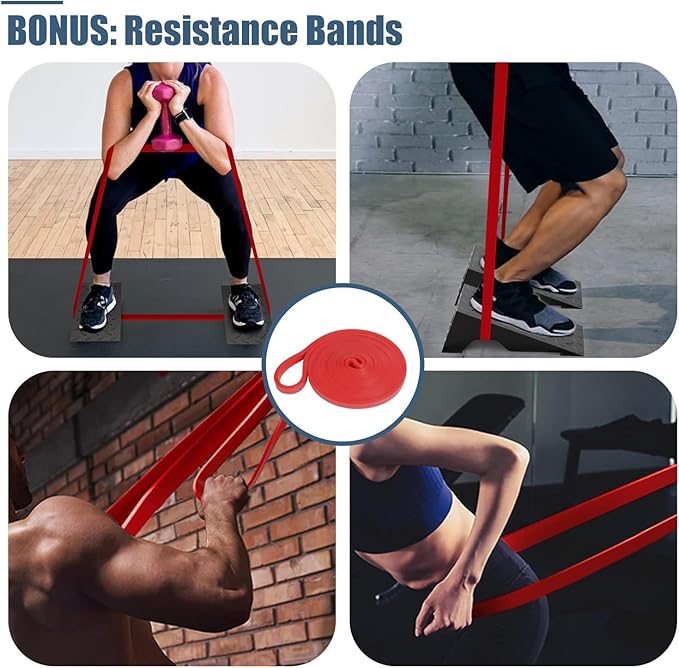 - 🏋🏻♀【AFFORDABLE THREE-PIECE COMBINATION】The combination also includes a 43.3" free resistance band. Each slant board has a special bottom slot for the resistance bands, which prevents them from slipping forward and helps you incorporate them into your workout.