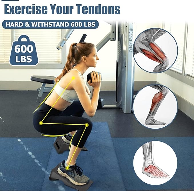 - 🏋🏻♀【ERGONOMIC DESIGN AND SAFE】Our Squat Wedge Blocks offers a height of up to 4.7" at a 20° elevation, perfect for heel-elevated squats and stretching your calves. Textured surface prevents the feet from slipping during exercise while the 4 rubber bumpers keep the squat stand from sliding on the floor.
