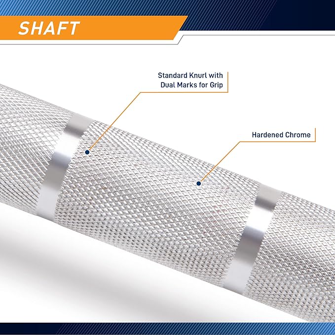- Lighter knurling marks on the shaft of the Olympic bar are coated with ceramic, which increases friction between your hands and the bar, therefore improving overall grip
