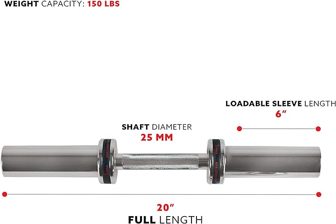 - Accommodates Olympic weight plates with 2-inch center holes up to a maximum combined weight of 150LBS