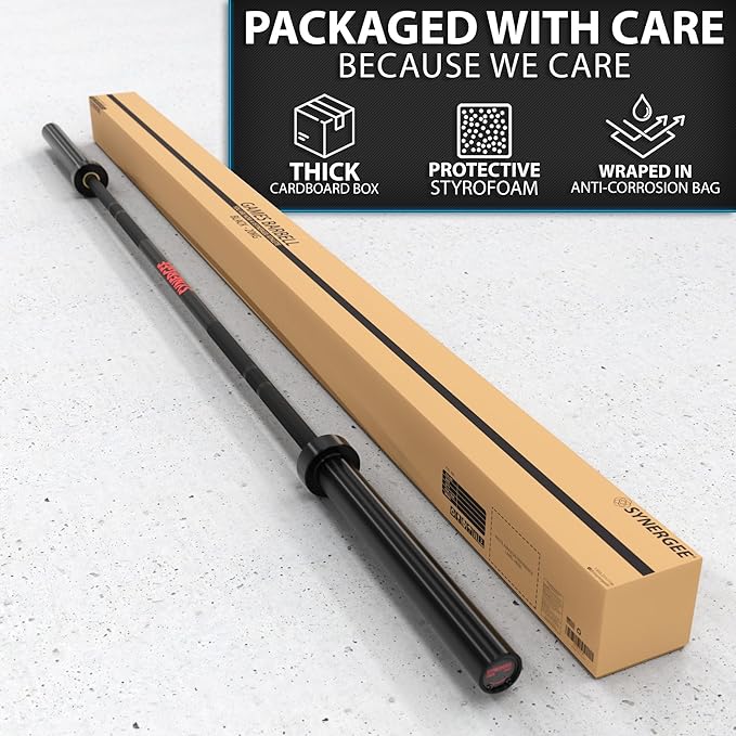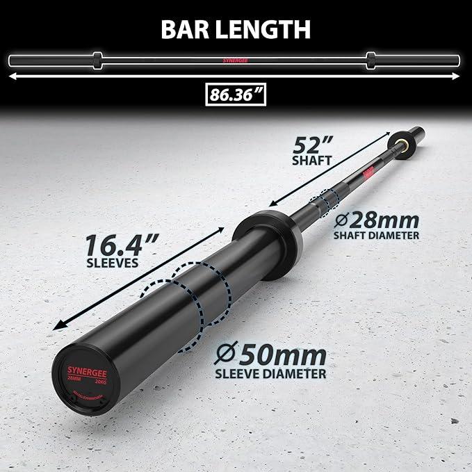 - ★ FITTER, FASTER, STRONGER ★ - With a loadable sleeve length of 16.4 inches (20 kg) and 13 inches (15 KG), our barbell can carry heavy loads, helping you push out of your comfort zone and reach your potential. Created by athletes, for athletes, our Synergee Staff have witnessed members of our Synergee Community crush their PRs with the Games Bar, which is exactly why we created it.