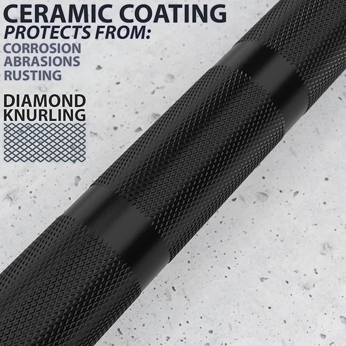 - ★ CERAMIC COATED FINISH ★ – Our steel bar is finished with a CERAMIC COATED coating: you’ll look tired at the end of your workout, but this barbell won’t – even after years of use! Choose which color you want and get yourself a bar that suits your style as well as your workouts.