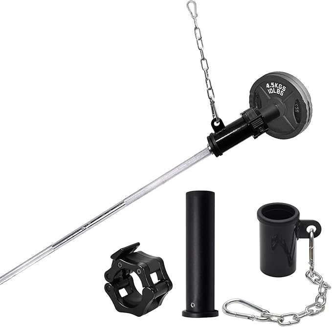 • 🔗Easy to use - slip on the sleeve end of the 2-inch Olympic slide bar and simply slide it along until it fits snugly on the slide bar sleeve, then add the weight plate and secure the handle to the hook. Change the location of the snap link on the extension chain or remove the extension chain and attach the handle to the Landmine Single Eyelet using only the single snap.